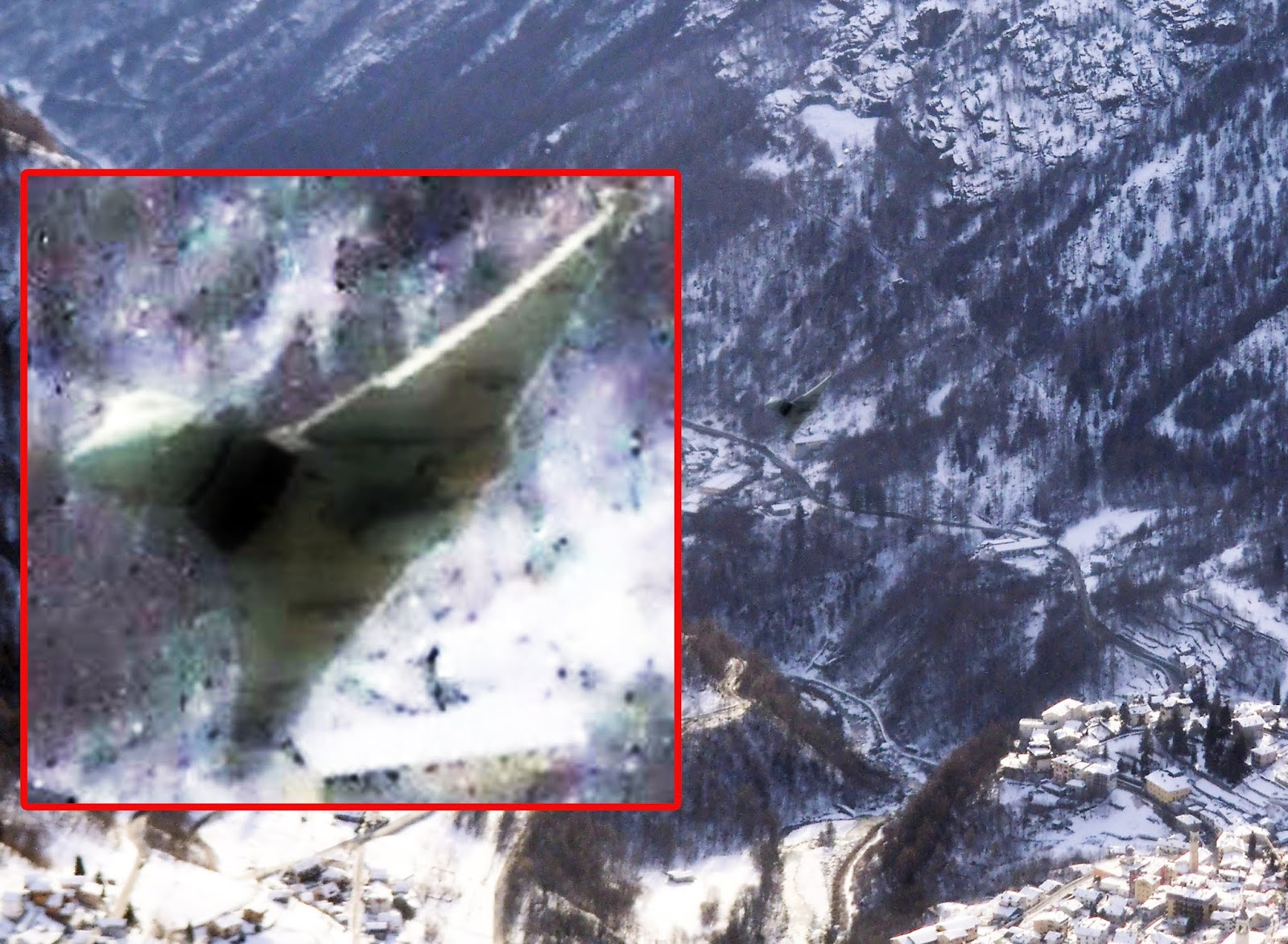 Foto 7: Quando un jet opera dentro una vallata genera un frastuono incredibile e infrange le regole in vigore. L’aeronautica può unicamente negare o dire che il jet è passato in alta quota; ma se qualcuno scatta una foto del genere, questa proviene dalla Valmalenco, poi diciamo che la foto è falsa?
