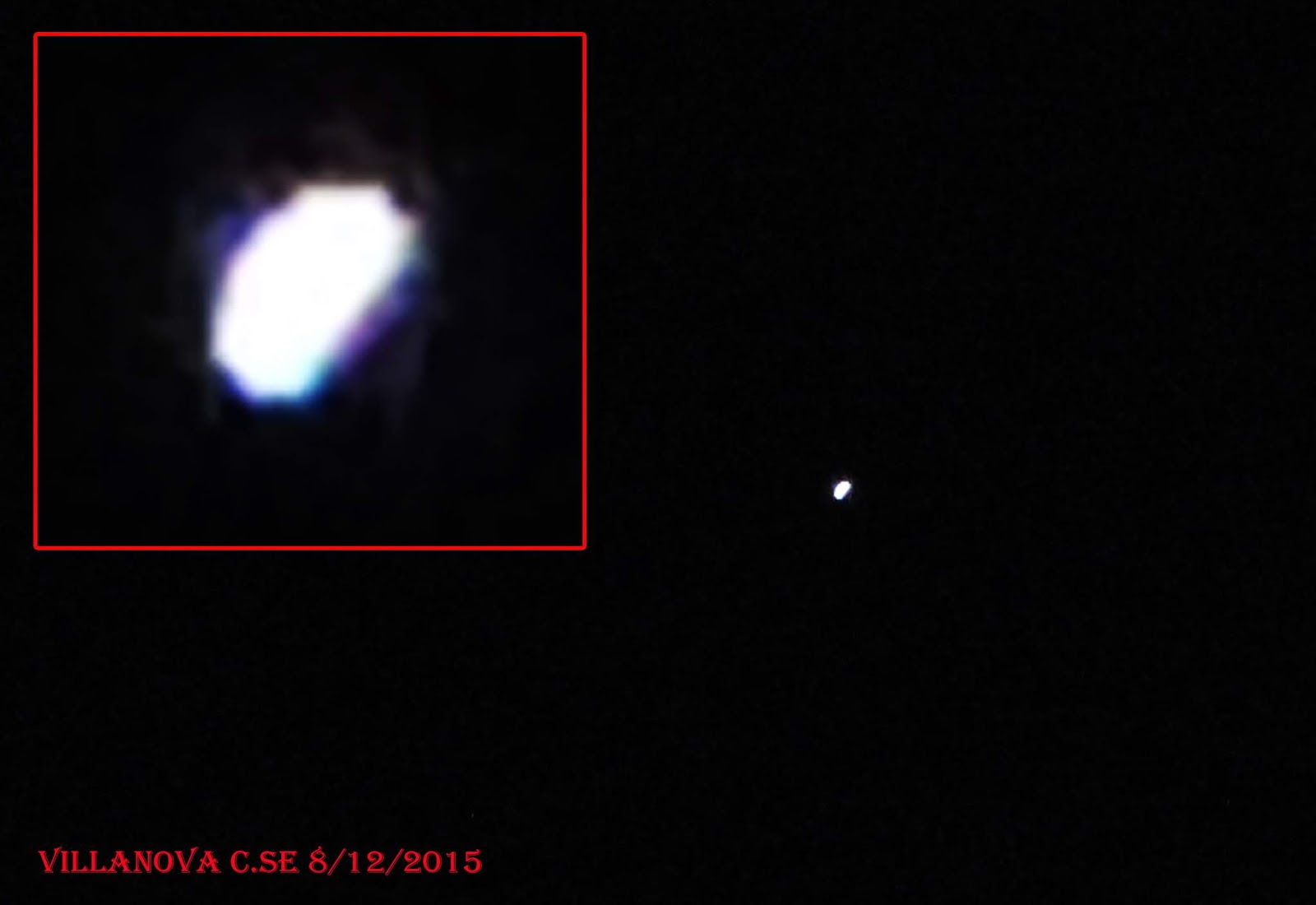 Foto 5 e 6: sono state scattate personalmente mentre l’oggetto volante passava lentamente sopra Villanova/Mathi. Come si può costatare, nel momento in cui era fermo o quasi, la luminosità è tonda. Mettendosi in movimento, si è allungata. Essendo forte e grande la luminosità, nulla è visibile della causa alle spalle.