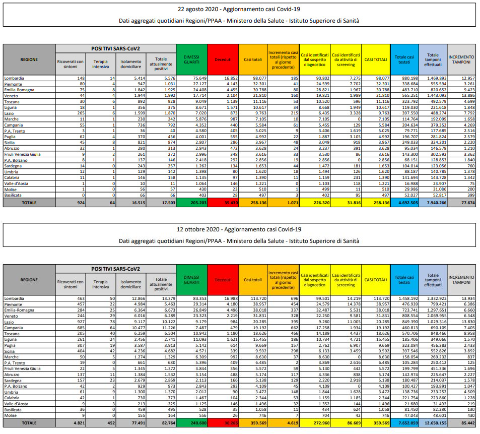 Io mi baso sui dati che mostrano, non ho altro per giudicare; queste sono le situazioni del 22 agosto e di ieri 12 ottobre, 1 mese e 3 settimane di distanza.