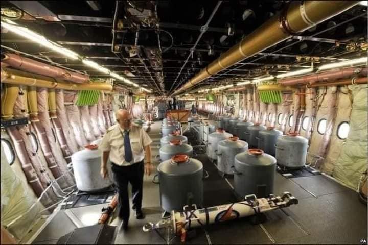 Il collaudatore Harry Nelson cammina lungo l'interno dell'aereo di prova ("test aircraft") MSN1, un Airbus A380 Superjumbo jet, pieno di apparecchiature di prova e miglia di cavo mentre si trova all'aeroporto di Filton, Bristol, in attesa di partire per Tolouse, Francia, dopo un tour in Europa e il Regno Unito dove si stima che un milione di persone si siano presentate per vedere l'aereo. (Foto di Ben Birchall / PA Images tramite Getty Images)