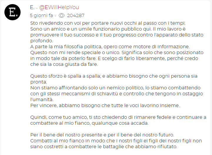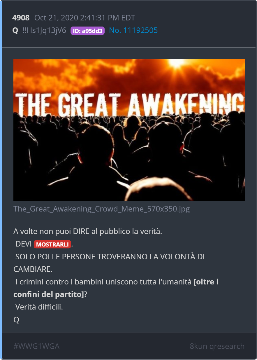 Oggetto del messaggio: Re: Qanon - Il Piano per salvare il Mondo