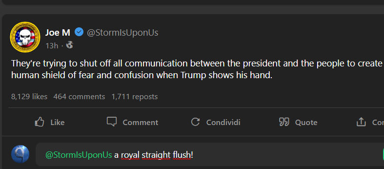 "Davvero pensavate di poter togliere il potere al deep state e mandarlo in galera con il voto?