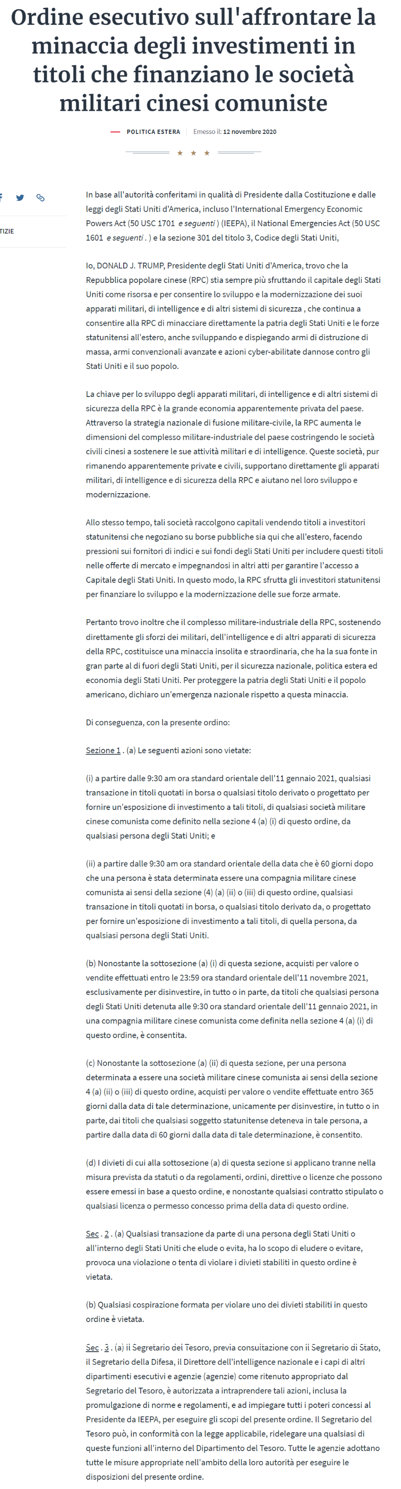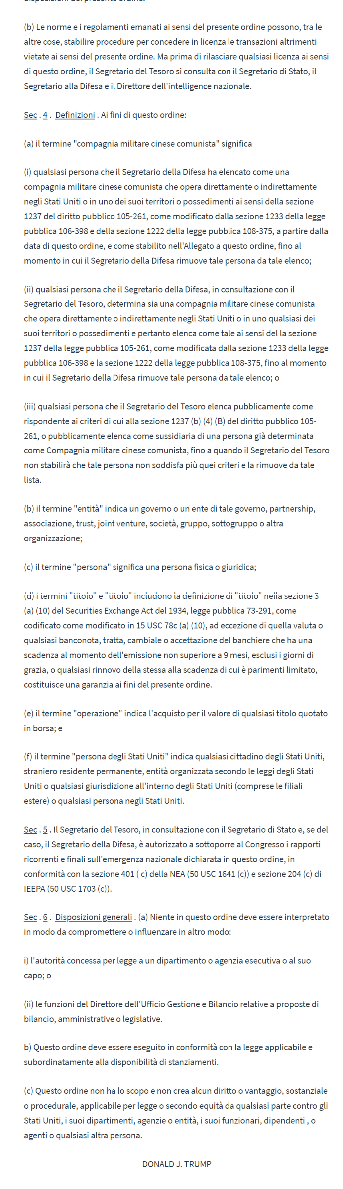 Sono d'accordo con il presidente Trump.
