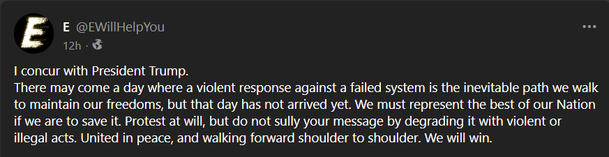 Dimmi, dopo aver abbattuto i tuoi nemici, come impedisci ai nuovi di sorgere? E dopo che Trump ha lasciato l'incarico un giorno; Cosa farai?