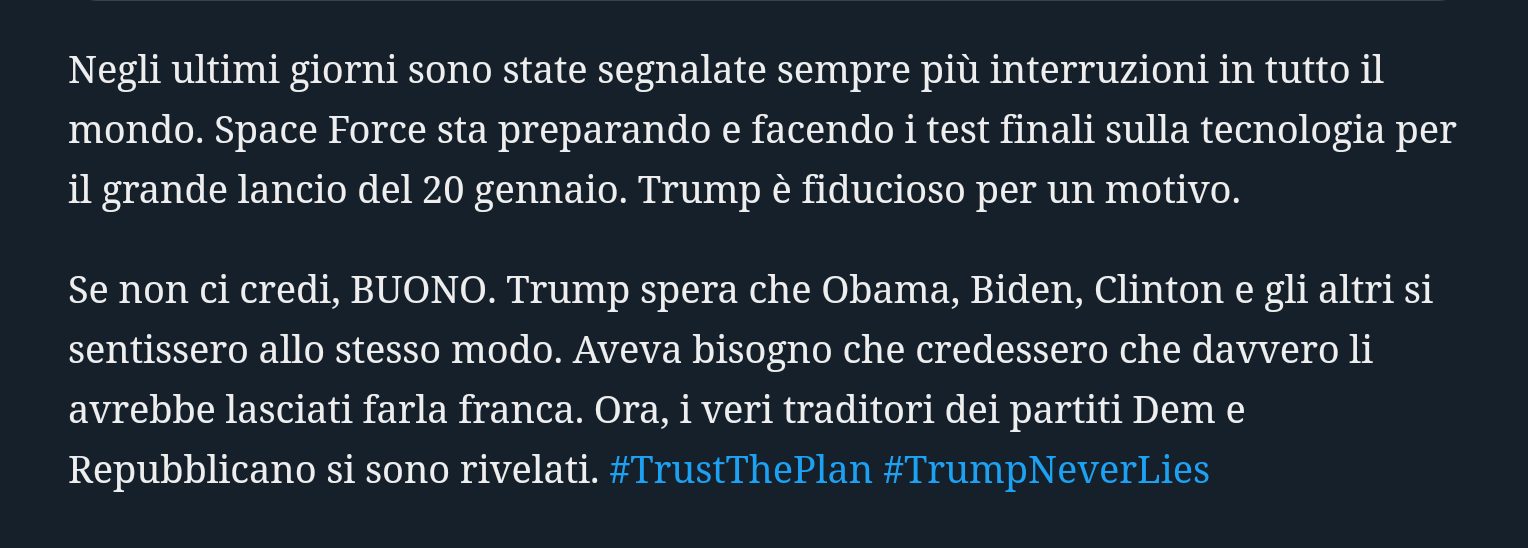 1) Il Senato non può legittimamente tenere un processo al Senato dopo che il Presidente ha lasciato l'incarico il 20 gennaio. O esso o la Camera avranno il potere di presentare un reclamo penale al Dipartimento di Giustizia come ha fatto la Camera dopo aver scoperto che l'ex Segretario Di Stato HRC aveva commesso il reato di distruggere le sue e-mail che erano state sottoposte a citazione per produrre al Congresso. Ma avendo lasciato l'incarico, HRC era immune dall'impeachment e dal processo del Congresso. Senza un processo e una condanna in tribunale, HRC poteva candidarsi a una carica federale, ovvero alla presidenza. Dopo il 20 gennaio, il Senato non avrà alcun potere costituzionale per impedire a DJT di candidarsi alla presidenza nel 2024.