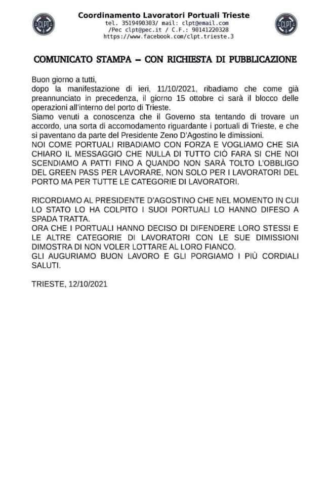 Al governo non si smentiscono mai,sono i soliti cretini, per i portuali i tamponi gratis, mentre per tutti gli altri lavoratori non vaccinati, tutti a pagamento....