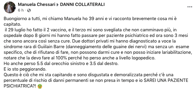 Quante denunce ci sono da parte di gente che "pensa" di essere stata danneggiata la vaccino?