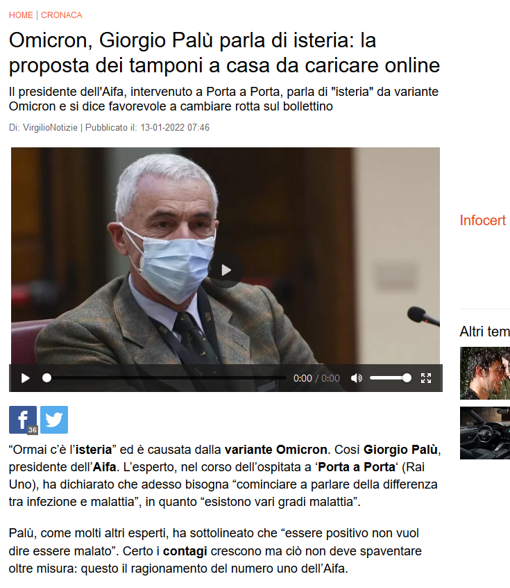 La politica del “meno salute e più pil(u) per tutti”, cara a Confindustria e i suoi derivati, pare pianificata da Boris Johnson travestito da Walter Ricciardi: si finge il massimo rigore (Green pass, Super Gp anche rafforzato, obbligo vaccinale, multe, garrote, anatemi), ma si lascia galoppare il virus sostituendo la quarantena ai trivaccinati con l’“autosorveglianza”, nella folle illusione che il Covid modello Omicron sia un’influenzetta per tutti fuorché per i No Vax.