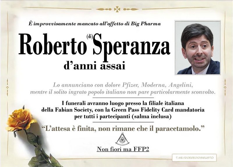 Basta con il silenzio “assordante” del Governo, delle Istituzioni, della politica e della stampa mainstream, i decessi fulminei e inspiegabili continuano, anche in queste ultime ore, ad un ritmo impressionante! Come si fa a tacere di fronte alla tragedia di queste morti improvvise e alle vittime dei gravi effetti collaterali che dopo la vaccinazione si sono visti la salute e la vita rovinate, persone, prima del siero, del tutto sane, che sono state oggi completamente abbandonate dallo Stato, che non sanno neppure come e dove potersi curare, anche a loro spese, come stanno facendo, senza purtroppo, in molti casi, neanche avere dei risultati soddisfacenti?