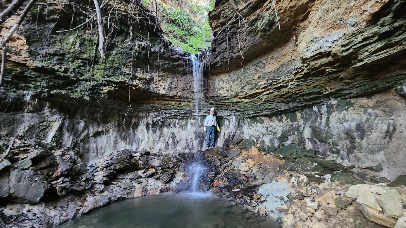 Alle fine del 2024 ho raggiunto in modo avventuroso l’area delle sorgenti, scoprendo che le antiche strutture che facevano parte di quel complesso di raccolta ed utilizzo dell’acqua, non esistevano più; la messa a nudo della collina alla base dalla quale continua a sgorgare l’acqua, ha esposto una cavità artificiale, che ho esplorato assieme a Raimondo Lentini e Giovanni Tortorici.