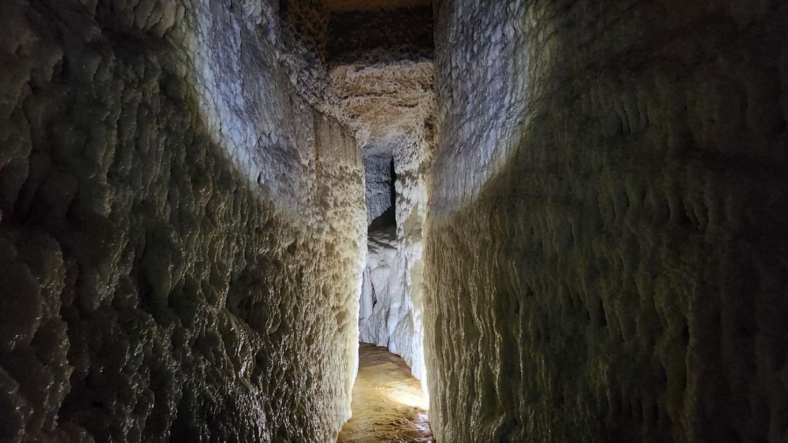 L’alta volta e le parteti della galleria si presentano rivestite da carbonato di calcio, facendo assumere al tunnel il suggestivo aspetto di una cavità carsica. Interessante l’ecosistema riscontrato in queste cavità con il rinvenimento di un esemplare di farfalla Triphosa dubitata, una falena che è stata dichiarata dalla Società Speleologica Italiana, “Animale di Grotta dell’Anno” per il 2025.
